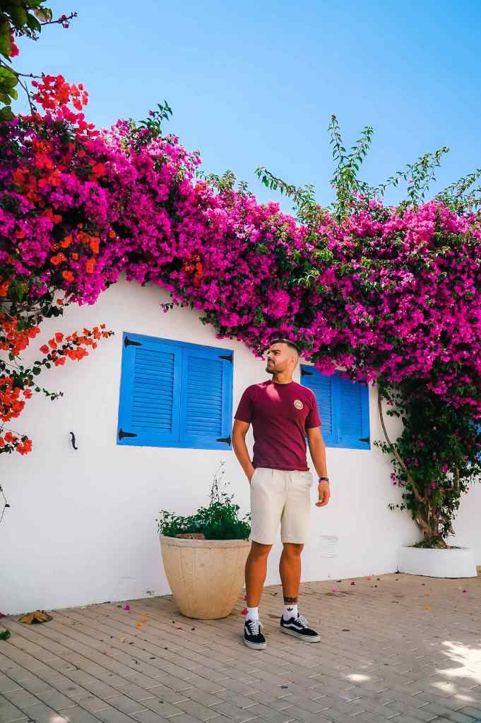 Sus calles parecen sacadas de una postal, literal. Estrechas calles empedradas con casas blancas decoradas con buganvilla, lo que le da una explosión de color.