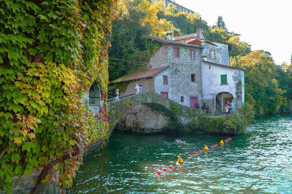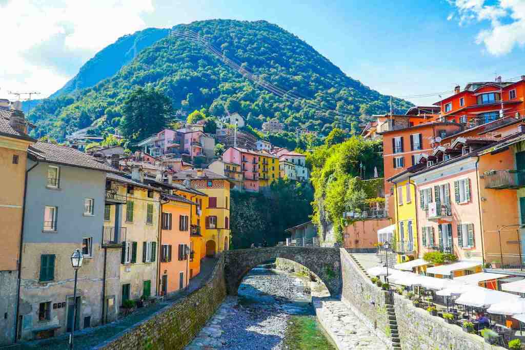 Punto inicial de la ruta, y… ¡menudo comienzo! Este pueblo es uno de los más espectaculares y fotogénicos del Lago di Como. Nada más llegar al puente del pueblo, verás como cae de forma impresionante la cascada al lago, aunque lo más visitado y emblemático del pueblo se encuentra en la parte baja, junto al lago. Para llegar aquí baja por las escaleras que verás a un lado del puente y que lleva hasta 📍Ponte della Civera, de piedra y estilo medieval. La subida será algo fuerte, pero merece la pena.