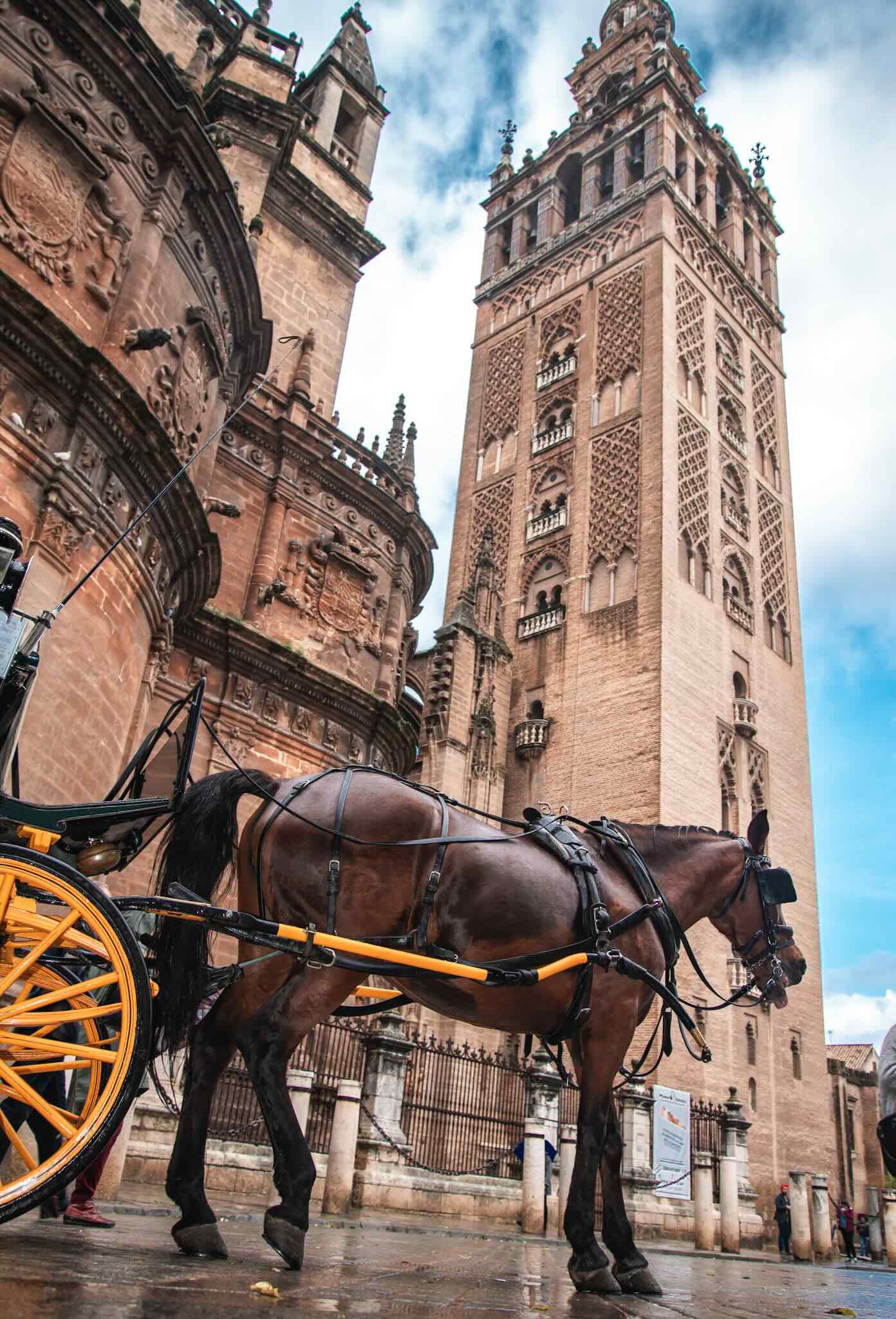 La Giralda, situada en el centro de la ciudad, es uno de los monumentos más emblemáticos y característicos de Sevilla, sin duda una parada obligatoria durante tu visita a la ciudad. Es el campanario de la Catedral de Sevilla y una visita imprescindible tanto para los amantes de la historia como para aquellos buscan sorprenderse por la belleza de su composición.