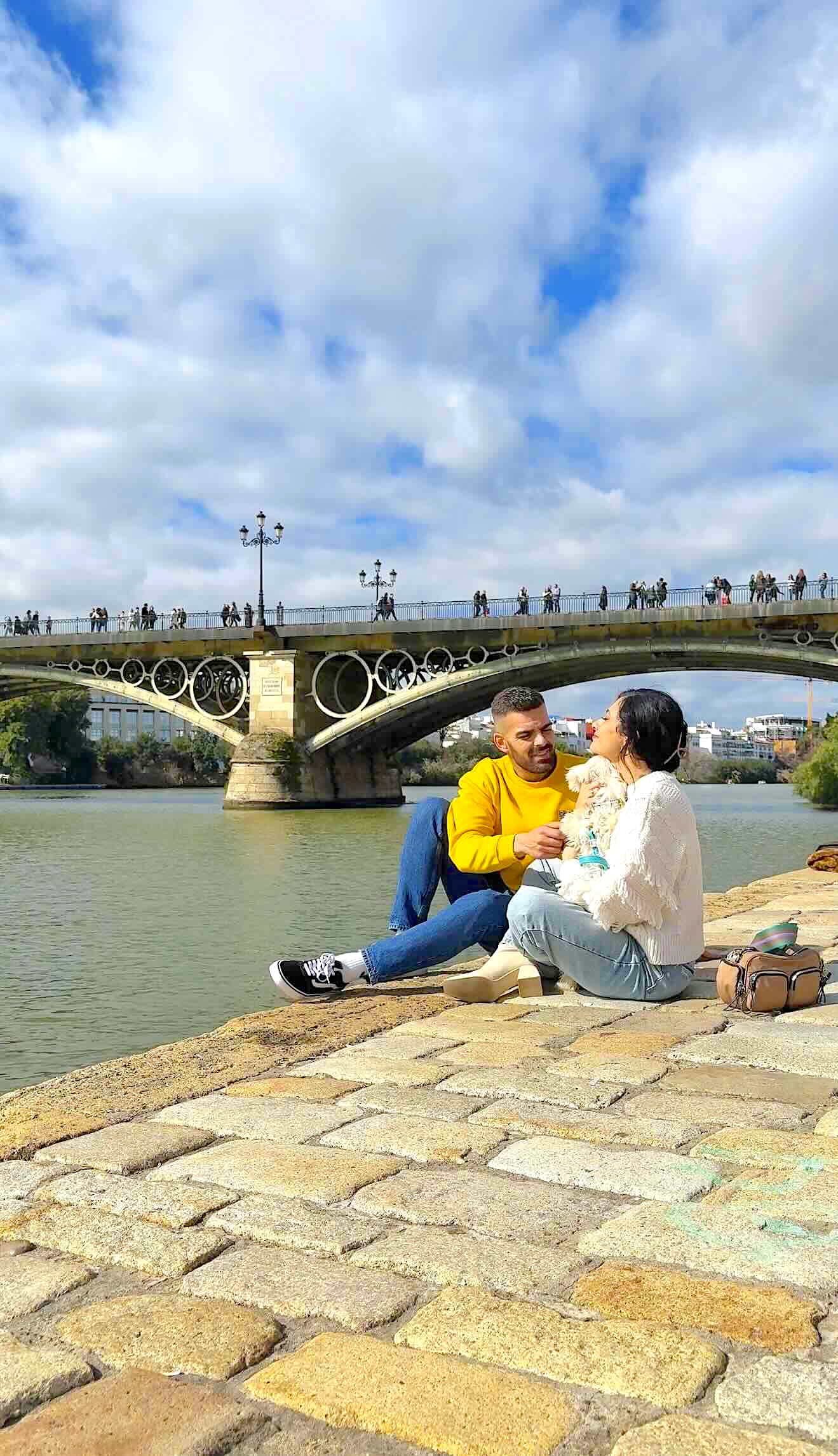 El Puente de Triana, también conocido como Puente de Isabel II, conecta el centro de la ciudad con el barrio de Triana. Es el puente más popular de Sevilla, y su fama se debe tanto a su diseño icónico como a su importancia histórica y cultural. Se encuentra a solo 10 minutos a pie de la Torre del Oro, lo que lo convierte en parte de un paseo precioso a lo largo del río Guadalquivir, lleno de ambiente y energía.