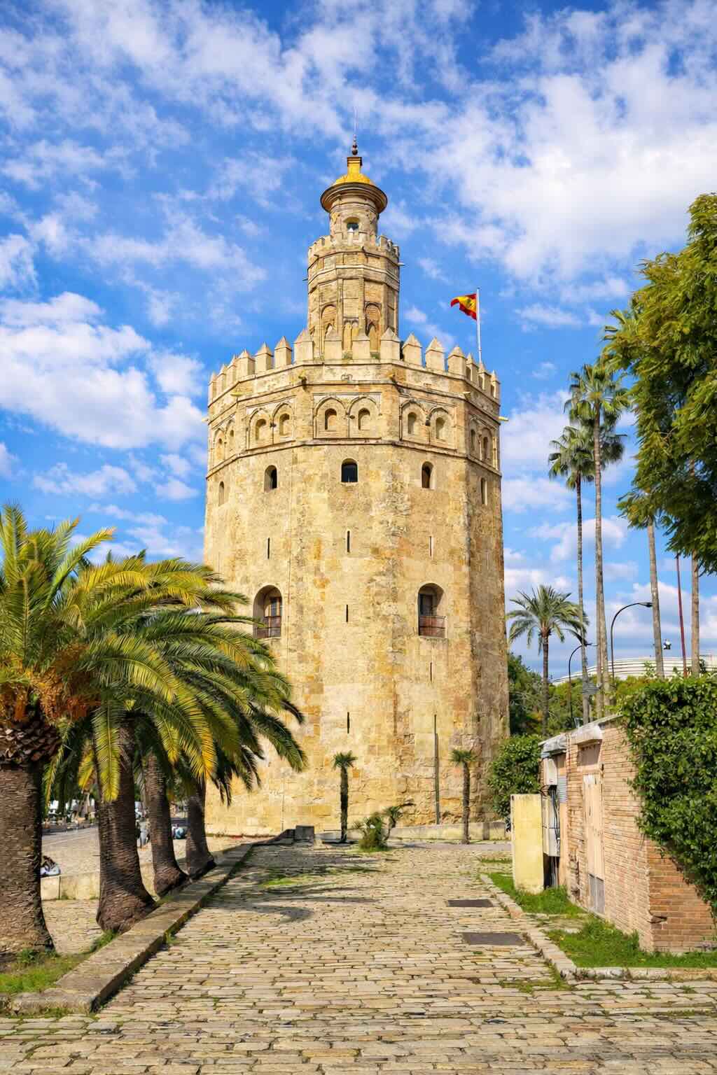 La Torre del Oro es otro de los monumentos más icónicos de Sevilla. Situada junto al río Guadalquivir, ofrece una vista de postal para todos los que la visitan. Puedes disfrutarla paseando por la orilla del río o, si lo prefieres, incluso subir a la torre, desde donde podrás apreciar increíbles vistas panorámicas de la majestuosa ciudad.